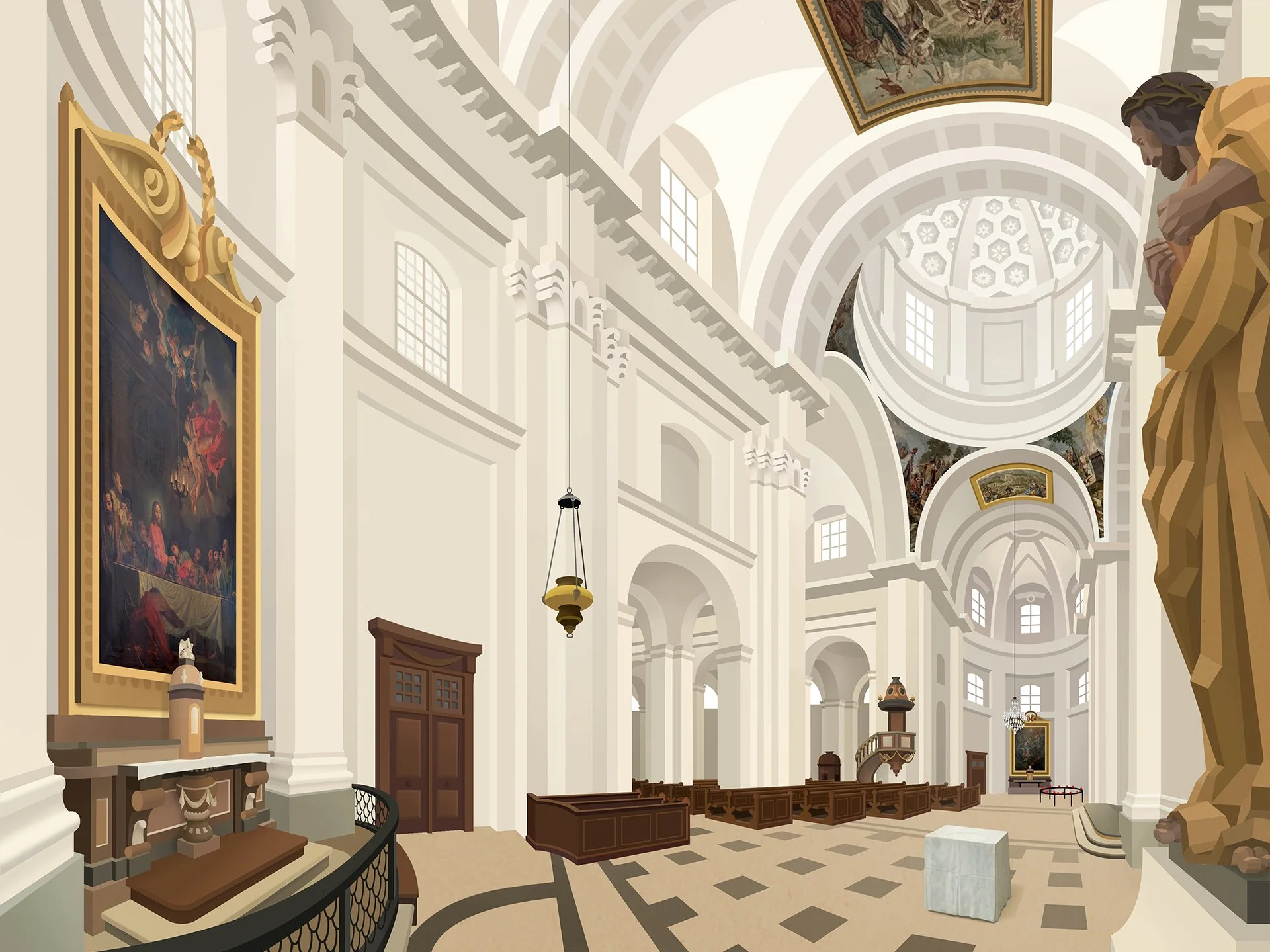 Bei der St. Ursenkathedrale (Kathedrale St. Urs & Viktor) handelt es sich um die Kathedrale des römisch-katholischen Bistums Basel in der Stadt Solothurn. Regula Wyss (mmwyss.ch) und Carol Rosa (kultessen.ch) realisierten zwei multimediale Vermittlungsstationen, die sich an Erwachsene und Kinder (ab 5 Jahren) richten. Anhand von Objekten im Kircheraum wird den Besucher:innen auf spielerische Art und Weise Einblick in die dahinter verborgenen christlichen Botschaften gegeben. Diese vermittelten Inhalte zum Thema Glauben und Spiritualität sollen das Publikum zu Fragen und Diskussionen anregen wie auch animieren, die Kathedrale mit Herz, Kopf und allen Sinnen weiter zu entdecken.